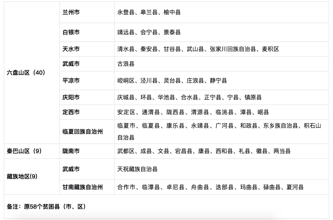 甘肅省國家專項(xiàng)計(jì)劃實(shí)施區(qū)域