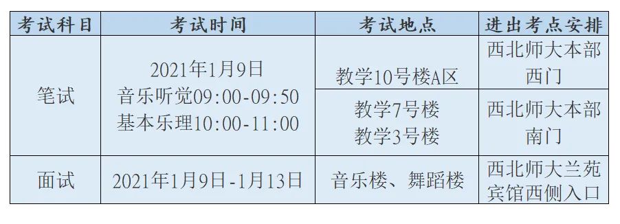 (十一)聲樂檢錄地點在舞蹈樓前,器樂檢錄地點在音樂樓前,考生須嚴格遵守新冠疫情防控要求,在西北師大蘭苑賓館西側排隊進出學校(運送大件樂器的車輛由考生憑藝術體育類專業考試準考證從西北師范大學北門帶入學校,所有人員均須檢測體溫并出示健康碼)。
