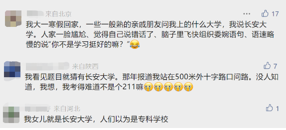 此前,曾有網友如此調侃江南大學:學校是好學校,就是校名取得有些“飄”了。單看校名前綴,很多人可能甚至不知道它在哪里,因此也經常有人問:江南這個區域那么大,江南大學到底是在江南哪里?怎么聽起來反而有股野雞大學的味兒?其實,它可是名副其實的211高校。江南大學是教育部直屬、國家“211工程”重點建設高校和“雙一流”建設高校。2001年,無錫輕工大學、江南學院、無錫教育學院合并組建江南大學;2003年東華大學無錫校區并入江南大學。目前,江南大學已逐步成為一所規模結構合理、學科協調發展、辦學效益顯著、特色鮮明的高水平大學。學校目前擁有食品科學與工程、輕工技術與工程等10個博士學位授權一級學科,生物與醫藥1個專業學位博士點,30個碩士學位授權一級學科以及16個碩士專業學位授權類別。輕工技術與工程、食品科學與工程2個學科入選“雙一流”建設學科名單。不得不說,很多人第一次看到這個校名,可能真的會下意識以為西北農林科技大學是一所在二本批次招生的院校。因其校名同時含有“農林”和“科技”,所以有時候甚至容易被人誤解為??圃盒!?strong>其實,這是名副其實的985高校。西北農林科技大學地處陜西楊凌,是教育部直屬、國家“985工程”和“211工程”重點建設高校,首批入選國家“世界一流大學和一流學科”建設高校,2022年入選國家第二輪“雙一流”建設高校,2個學科入選“雙一流”建設學科。學校目前共有14個博士后流動站,16個博士學位授權一級學科,29個碩士學位授權一級學科,2個博士專業學位授權類別,17個碩士專業學位授權類別,77個本科專業。農業科學、植物學與動物學等14個學科進入ESI全球前1%,其中農業科學、植物學與動物學、環境科學與生態學等3個學科進入前1‰,農業科學進入前0.1‰。目前,已發展為全國農林水學科最為齊備的高等農業院校。很多人可能不知道,其實東華大學不在江西,而是位于全國絕對的經濟中心上海。同樣是校名包含“東華”二字,來自江西且校名突出了辦學特色的東華理工大學,在有些時候反而知名度更高。對比之下,東華大學似乎沒什么存在感。東華大學的前身是中國紡織大學,很多人都曾感嘆學校改名之后的知名度簡直一落千丈,放棄“國字頭”標簽更是令人惋惜,還認為校名看起來真的很像在二本批次招生的大學。其實,它也是名副其實的211高校。東華大學是教育部直屬、國家“211工程”、國家“雙一流”建設高校,目前已發展成為特色鮮明的多科性、高水平大學。學校在1960年被國家教育部確定為全國重點大學,1981年成為中國首批具有博士、碩士、學士三級學位授予權的大學之一;1998年被確定為國家“211工程”重點建設的高等學校;2017年入選國家“雙一流”建設高校,建設學科為紡織科學與工程;2022年,第二輪“雙一流”建設學科新增材料科學與工程學科。學校目前擁有7個博士后流動站、11個一級學科博士點、3個博士專業學位授權類別、28個一級學科碩士點、2個二級學科碩士點、18個專業學位碩士授權類別,還有2個國家“雙一流”建設學科。紡織科學與工程保持國內領先,化學等7個學科入圍ESI全球前1%,其中材料科學學科進入全球前1‰。長安大學坐落于古城西安,有人戲稱它的名字低調得讓人聯想到這是一個汽車品牌。