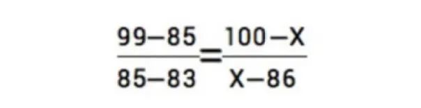 舉例說明:假如小王的地理科目原始成績為85分,在當年全省參加該科目考試的考生中位于前2.5%,根據上表,該成績位列A等級,該等級的賦分區間為100-86分。根據考生原始成績的分布,可知A等級的原始分數區間(假設為99-83分),那么小王地理科目的賦分成績(X)可通過如下公式計算: