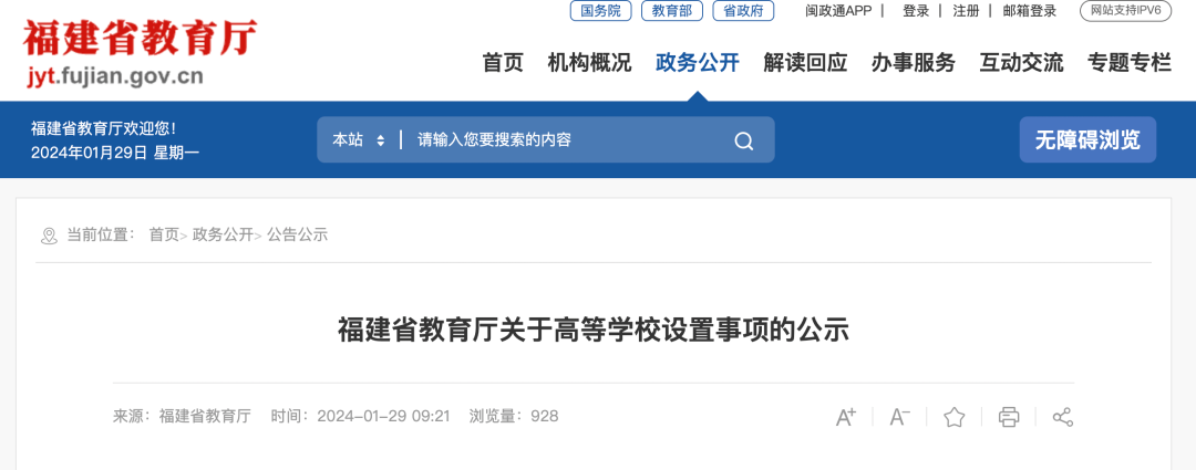 1月29日,福建省教育廳發布關于高等學校設置事項的公示,擬向教育部申報設立福耀科技大學(暫名)等2個事項予以公示。
