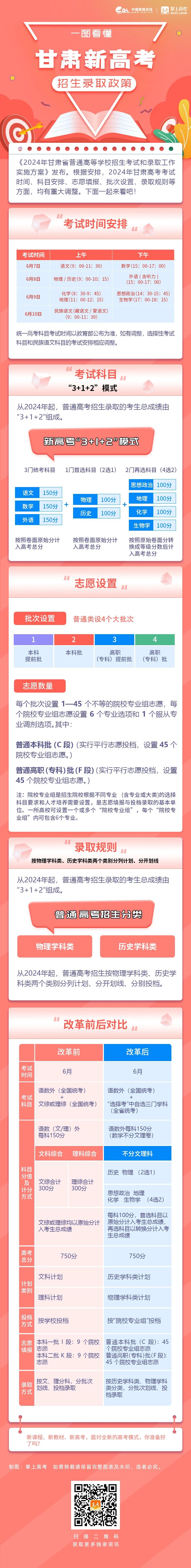 日前,甘肅發布了2024年普通高等學校招生考試和錄取工作方案。為了方便大家了解方案,小編整理了甘肅省高考招生政策,志愿填報、投檔及錄取原則等內容,供考生參考。