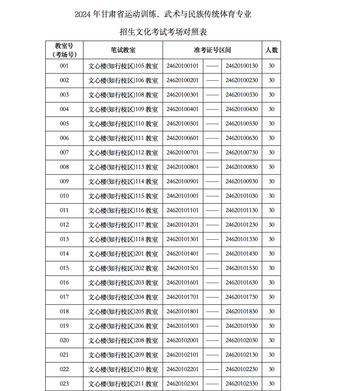 2024年甘肅省普通高校招生運動訓練、武術與民族傳統體育專業文化考試將于3月30日-31日在西北師范大學知行校區(蘭州市安寧區邱家灣37號)進行。現就考試相關事項告知如下: