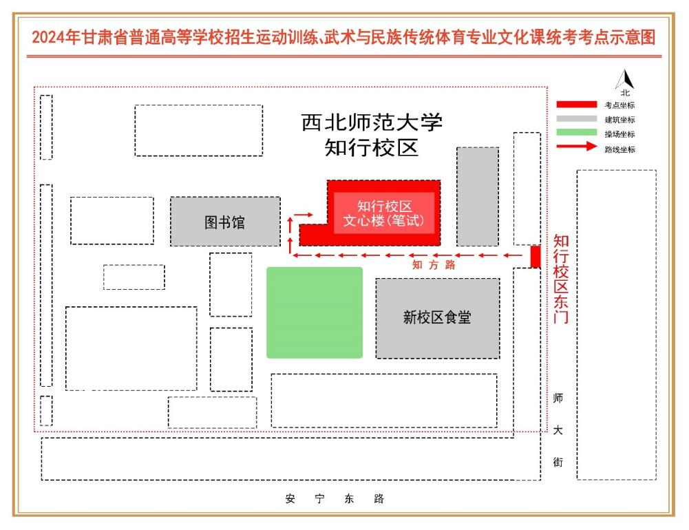 一、考生憑《2024年普通高校運動訓練、武術與民族傳統體育專業文化考試準考證》《居民身份證》提前50分鐘在西北師范大學知行校區東門有序入場。開考15分鐘后嚴禁進入考場參加當次科目考試,考試全過程考生不得離開考場。陪考人員一律不得進入考點。