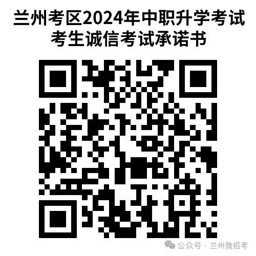 蘭州考區2024年中職升學考試考生誠信考試承諾書“二維碼”。