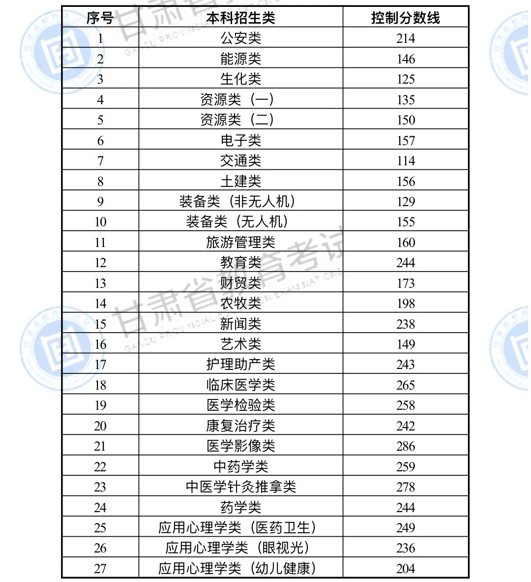 經研究審定,現將2024年甘肅省普通高校高職(專科)升本科統一考試招生錄取控制分數線公布如下: