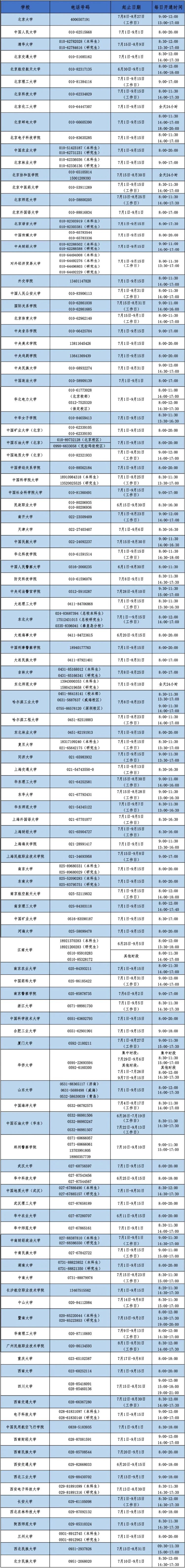同時,各省(自治區、直轄市)和中央高校同步開通熱線電話,電話號碼與每日開通時間如下。