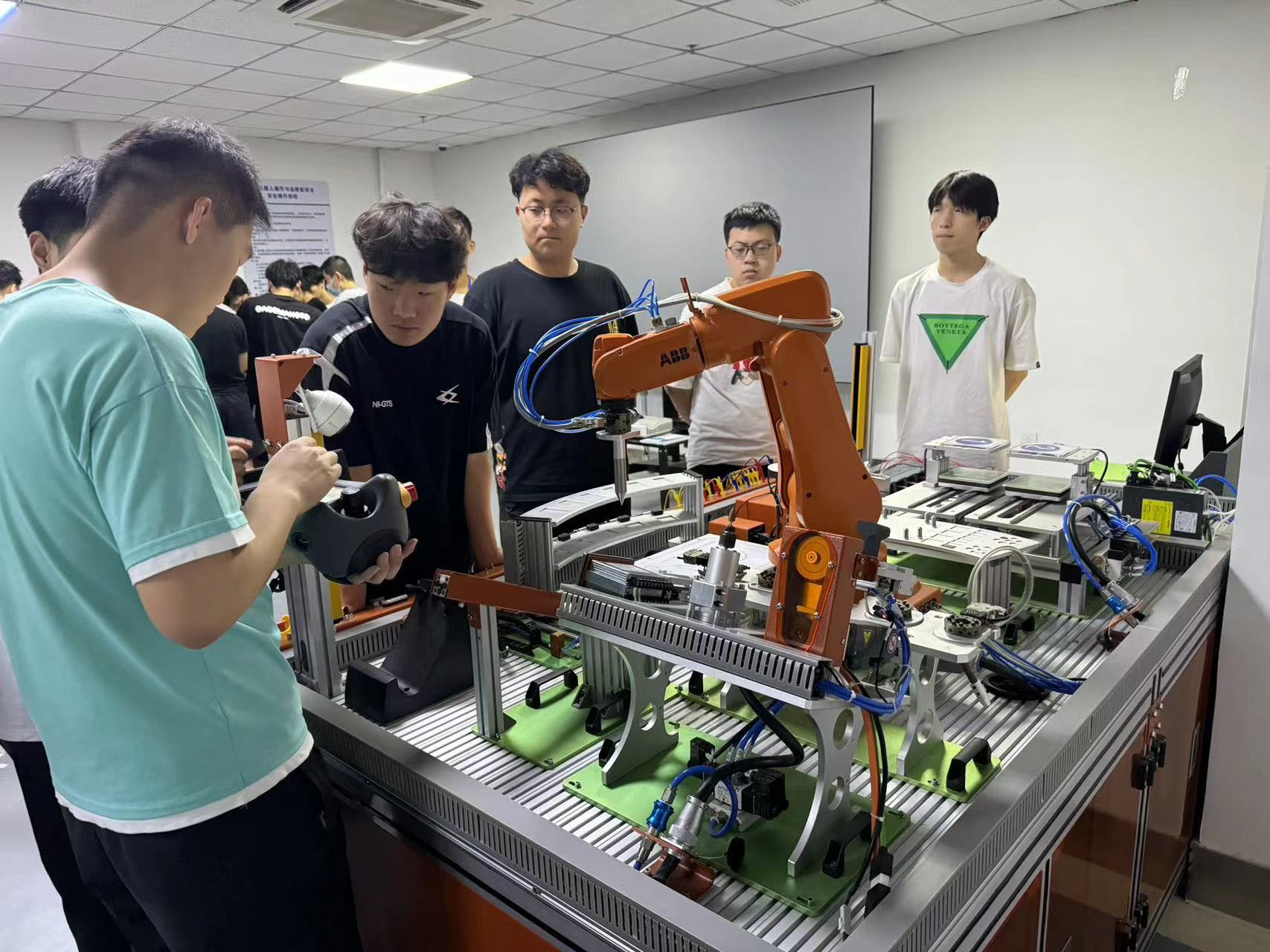 山東科技職業學院的學生正在練習操作機械臂的技巧。李丹攝