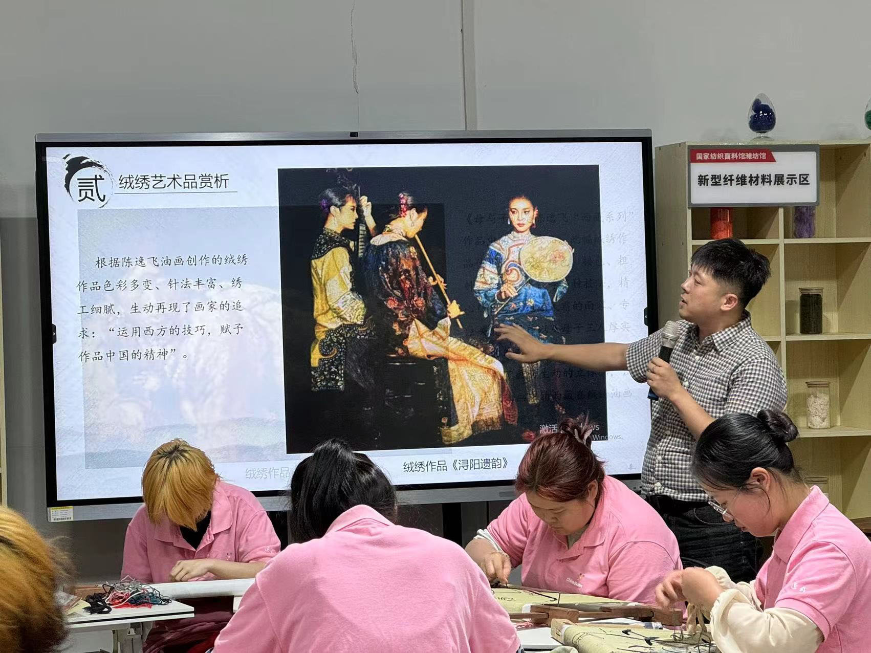 山東科技職業學院紡織服裝系學生在老師的指導下練習非遺項目——絨繡。李丹攝