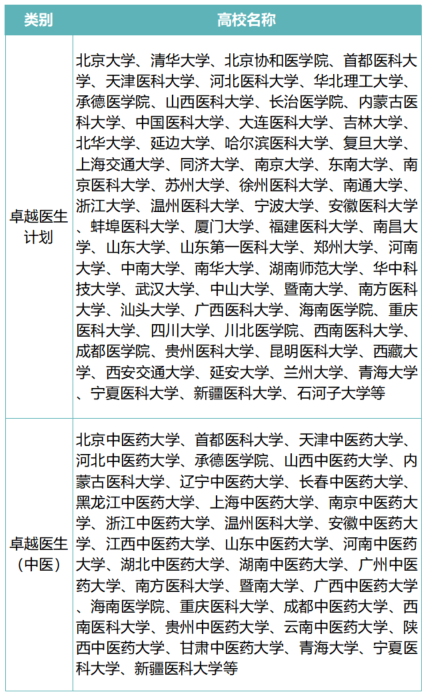 卓越醫生教育培養計劃試點高校名單(部分)
