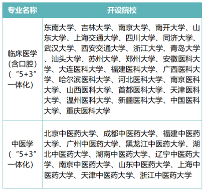 2014年以前,醫學長學制教育主要指八年制(本博連讀)和七年制(本碩連讀)。2015年,教育部辦公廳發布《關于做好七年制臨床醫學教育調整為“5+3”一體化人才培養改革工作的通知》(教高廳〔2015〕2號),將42所高校七年制臨床醫學(含中醫、口腔)專業招生調整為“5+3”一體化培養,即5年本科階段合格者,直接進入與住院醫師規范化培訓有機銜接的3年臨床醫學碩士專業學位研究生教育階段。