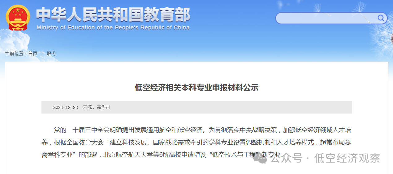 6所高校申請增設低空經濟相關本科專業,教育部增設電動飛行器應用技術等職業教育專業
