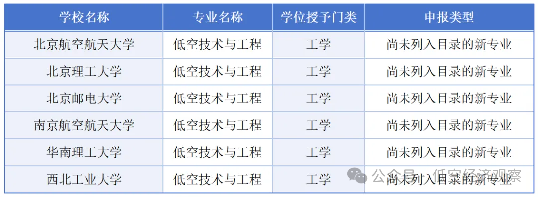 北京航空航天大學、北京理工大學、北京郵電大學、南京航空航天大學、華南理工大學、西北工業大學等6所高校申請增設“低空技術與工程”新專業。