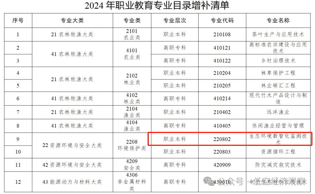 教育部更新發布了《職業教育專業目錄》,共增設40個新專業,