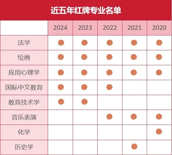 在近5年被列為“紅牌”專業次數達到4次及以上的專業,值得考生關注。