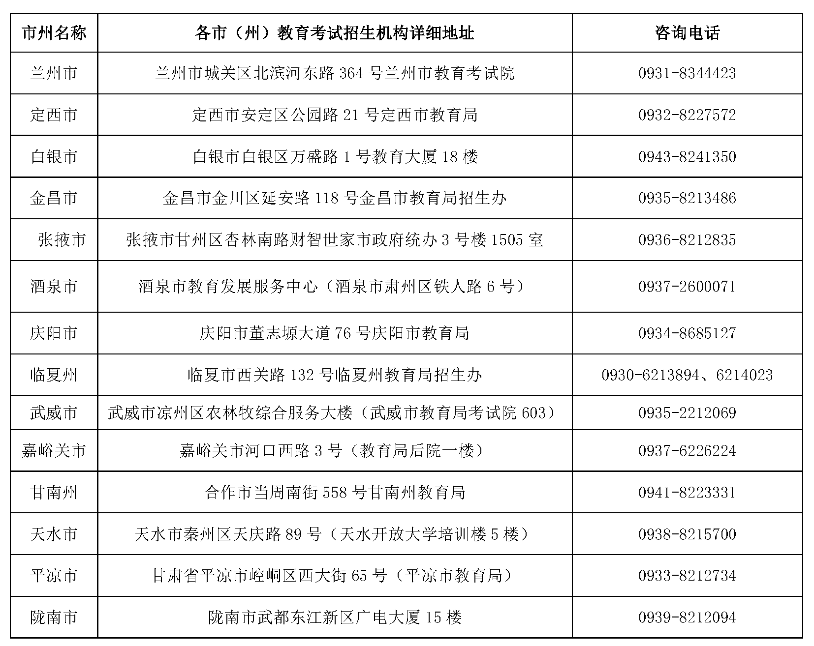 附:各市(州)教育考試招生機構咨詢電話及詳細地址