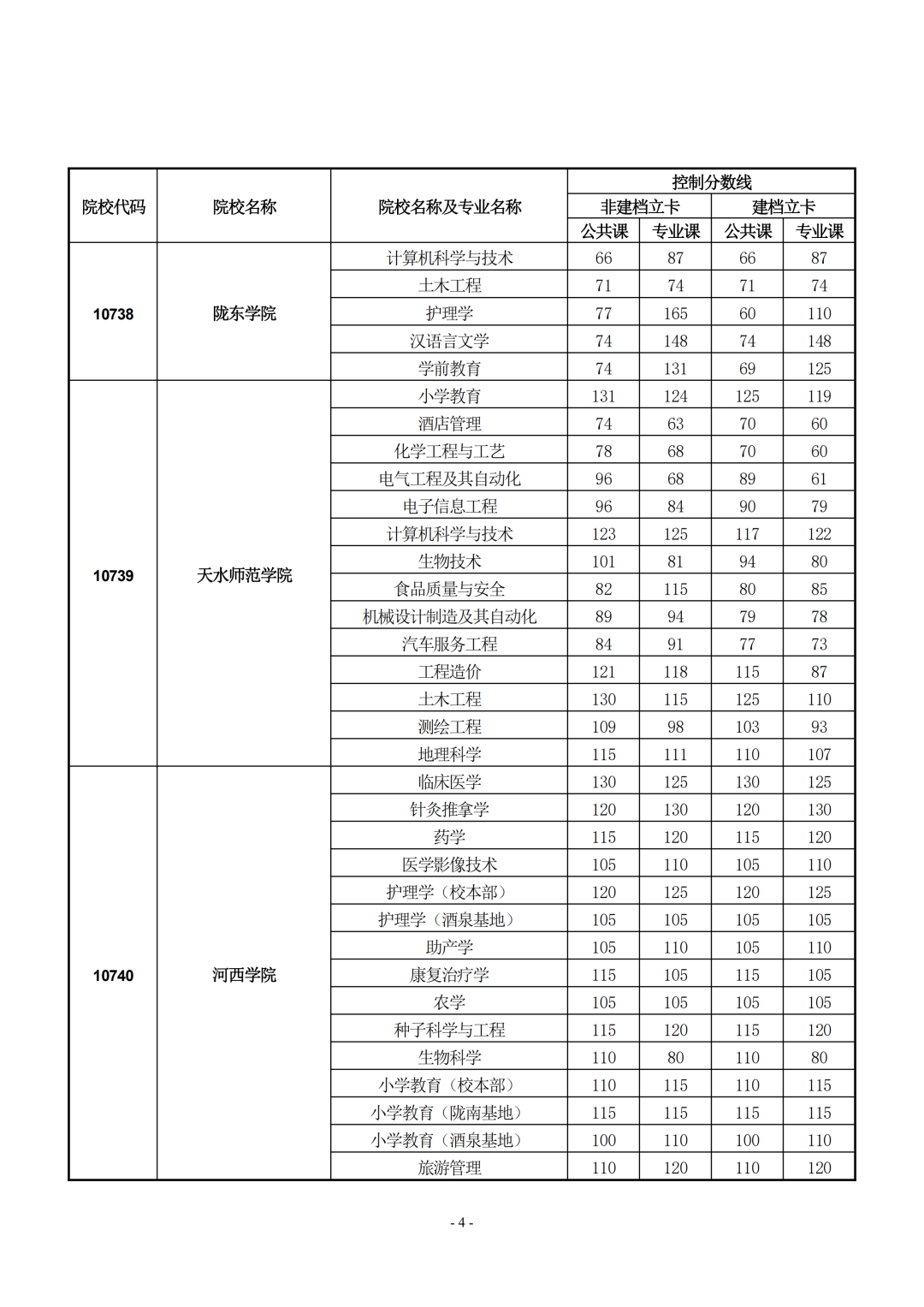 2021年甘肅省普通專升本首次招生錄取分?jǐn)?shù)線