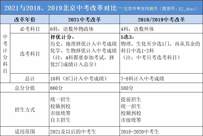 2021北京中考實行全科考試,歷史、地理擇優(yōu)1門計入中考成績,生物、化學(xué)擇優(yōu)1門計入中考成績;其中地理生物在初二下學(xué)期結(jié)課,化學(xué)、歷史中考結(jié)課。而2018-2020北京中考,必考科目為語文、數(shù)學(xué)、外語和體育;實行5選3選考。