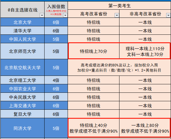 此外,開展強基計劃招生的高校全部為“雙一流高校”,這就要求考生的高考成績要與這些高校的層次相匹配。桃兮老師截取了部分高校的入圍規則,從高校對分數線的要求上不難看出入圍難易。