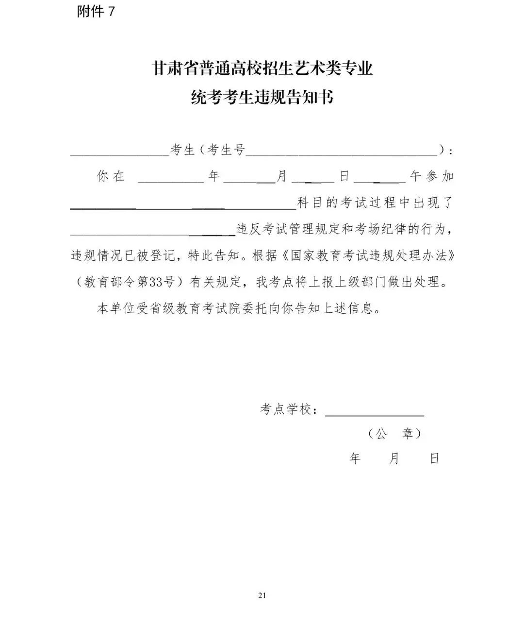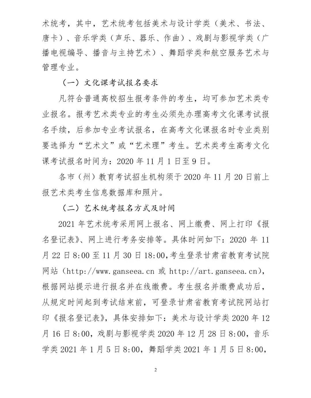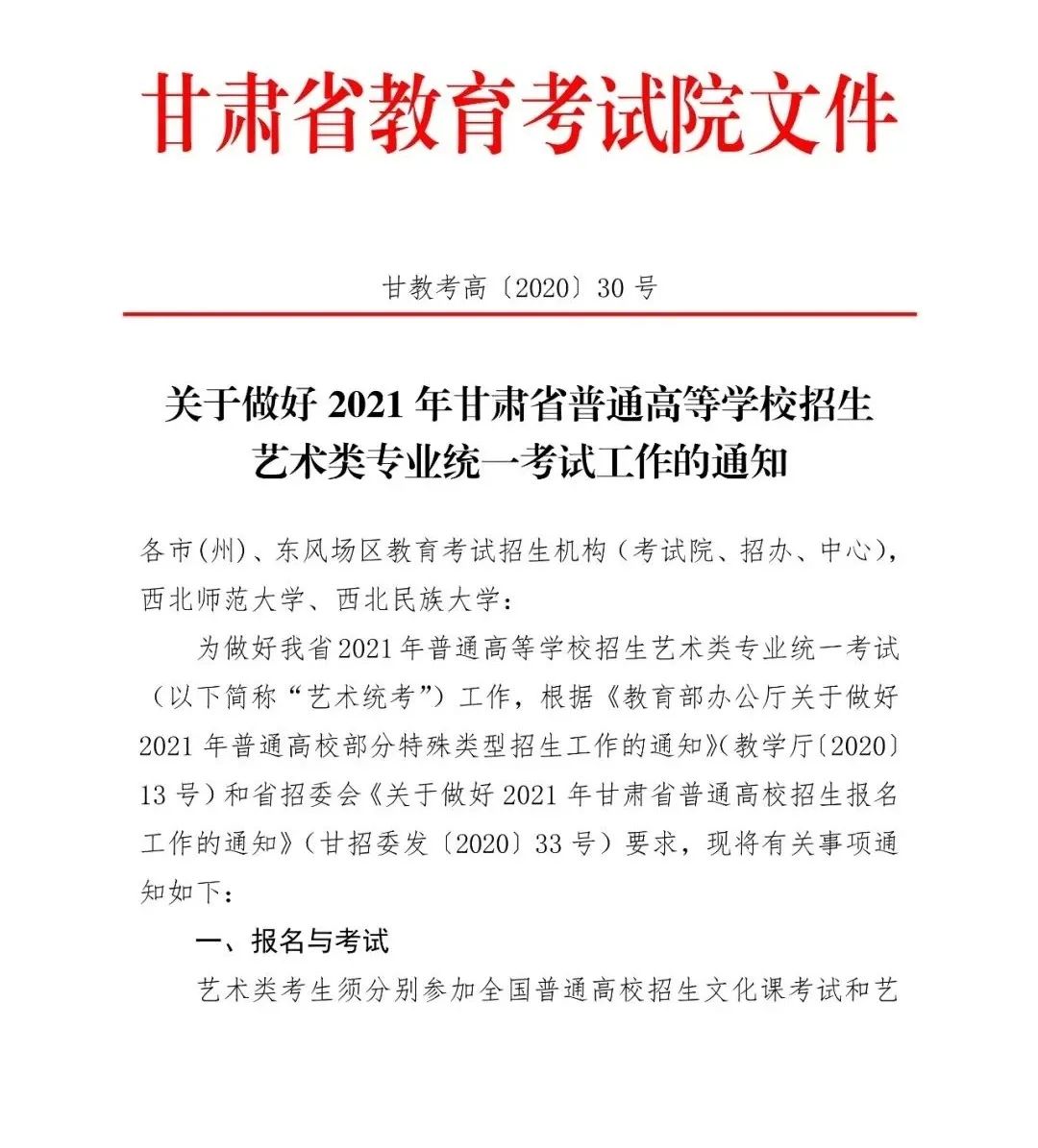 甘肅省2021年藝術(shù)類專業(yè)課統(tǒng)一考試通知