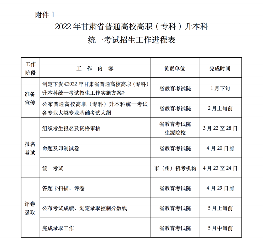 1. 2022年甘肅省普通高校高職(??疲┥究平y一考試招生工作進程表