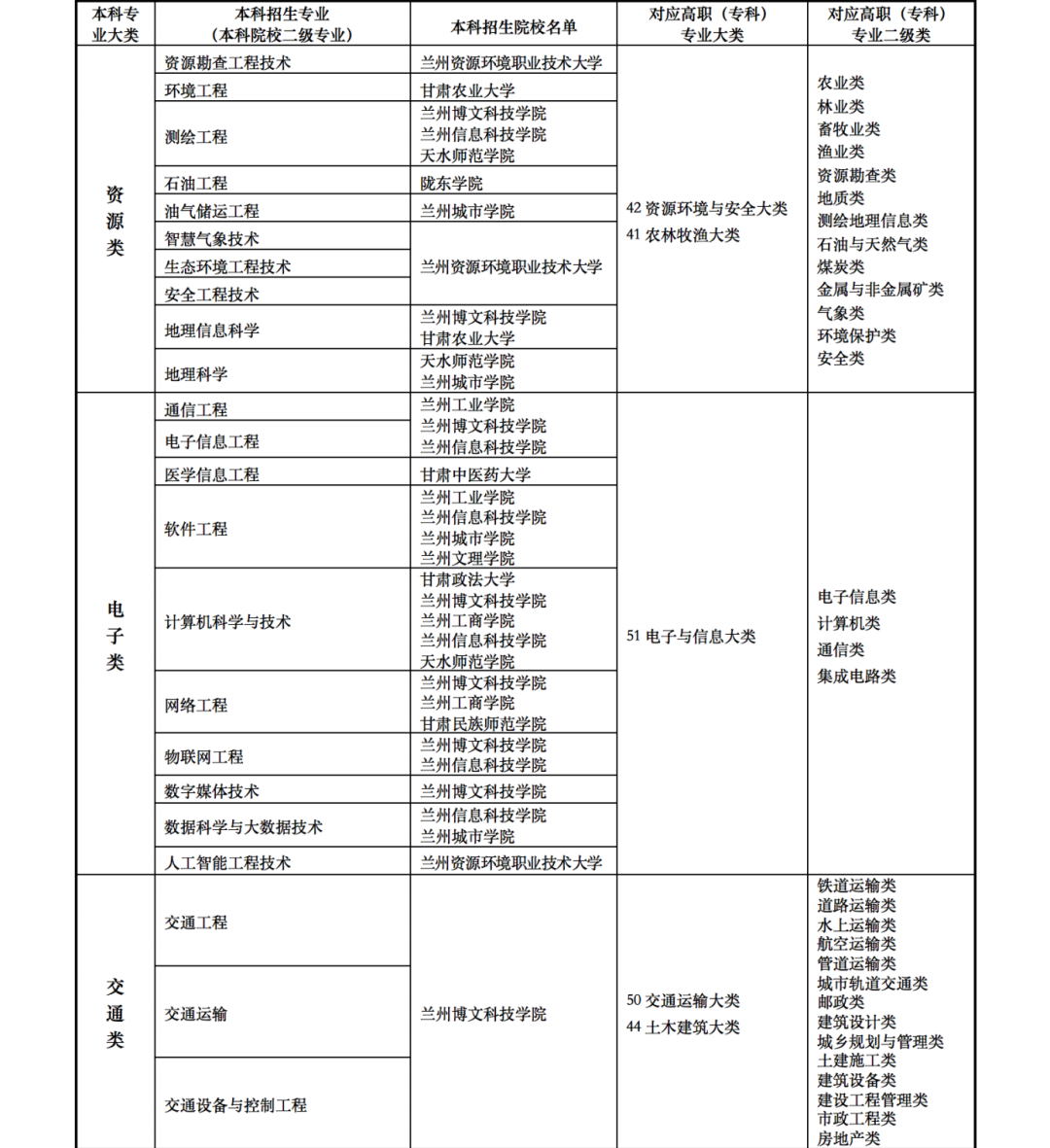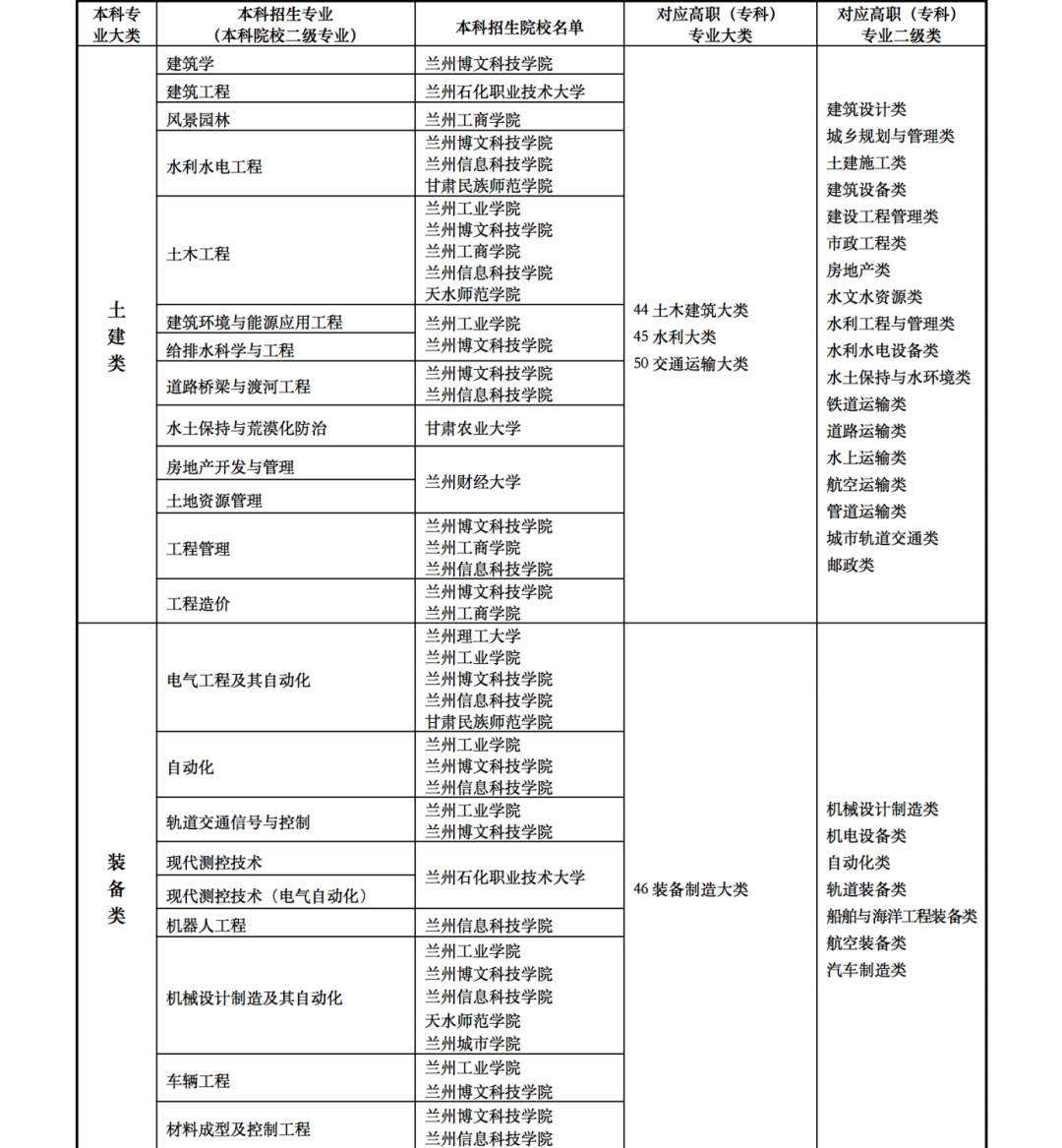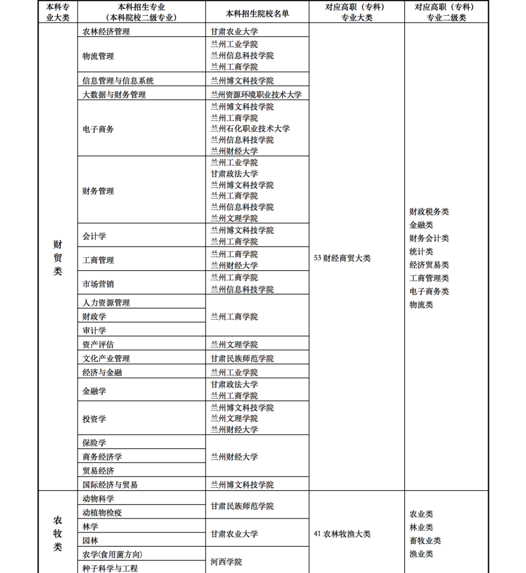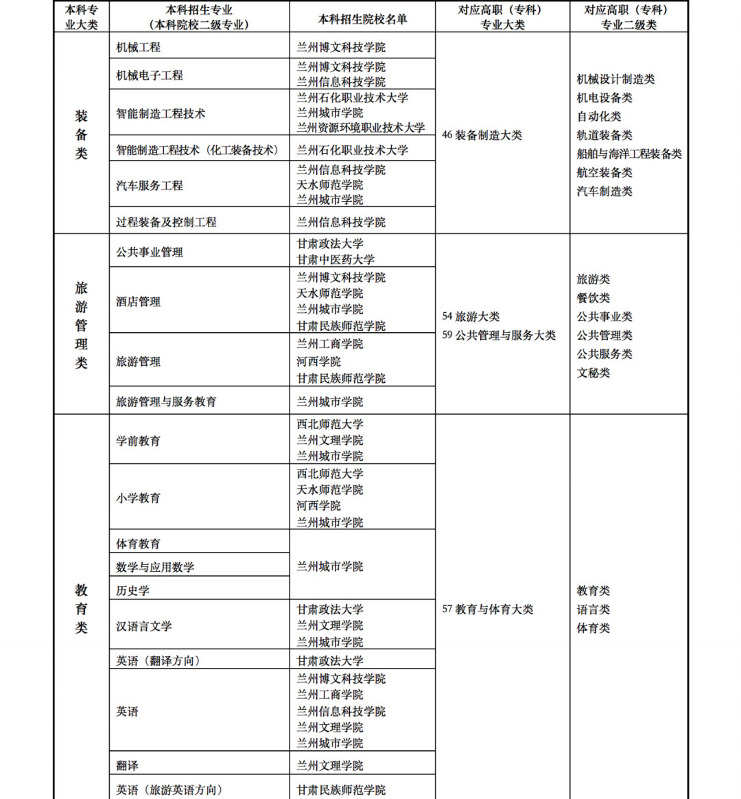 2.2022年甘肅省普通專升本高職(??疲┖捅究茖I大類對照表以及招生學校及專業目錄