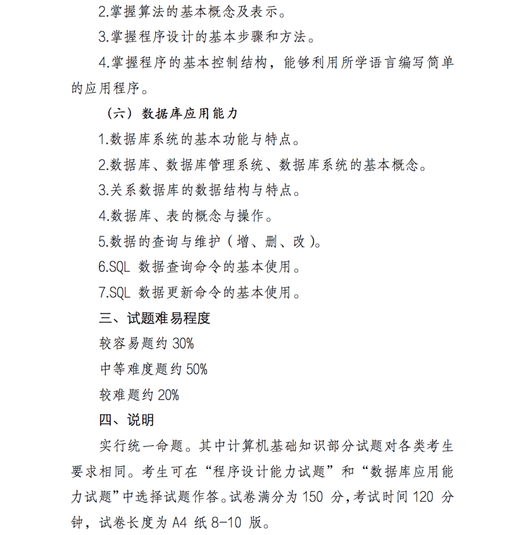 4.2022年甘肅省普通高校高職(??疲┥究平y一考試招生計算機科考試大綱