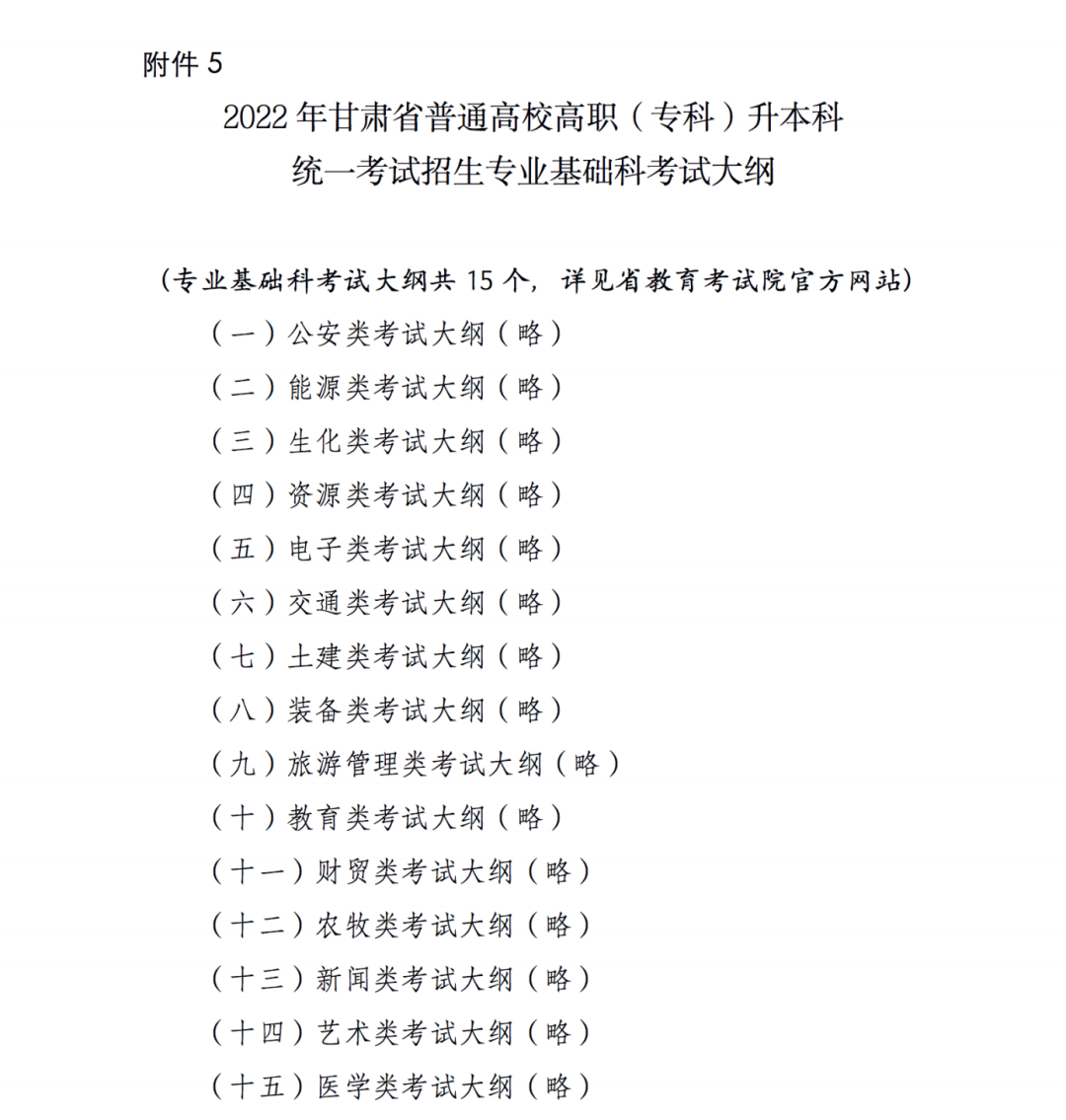 5.2022年甘肅省普通高校高職(??疲┥究平y一考試招生專業基礎科考試大綱(略)(專業基礎科考試大綱共15個,詳見省教育考試院官方網站)