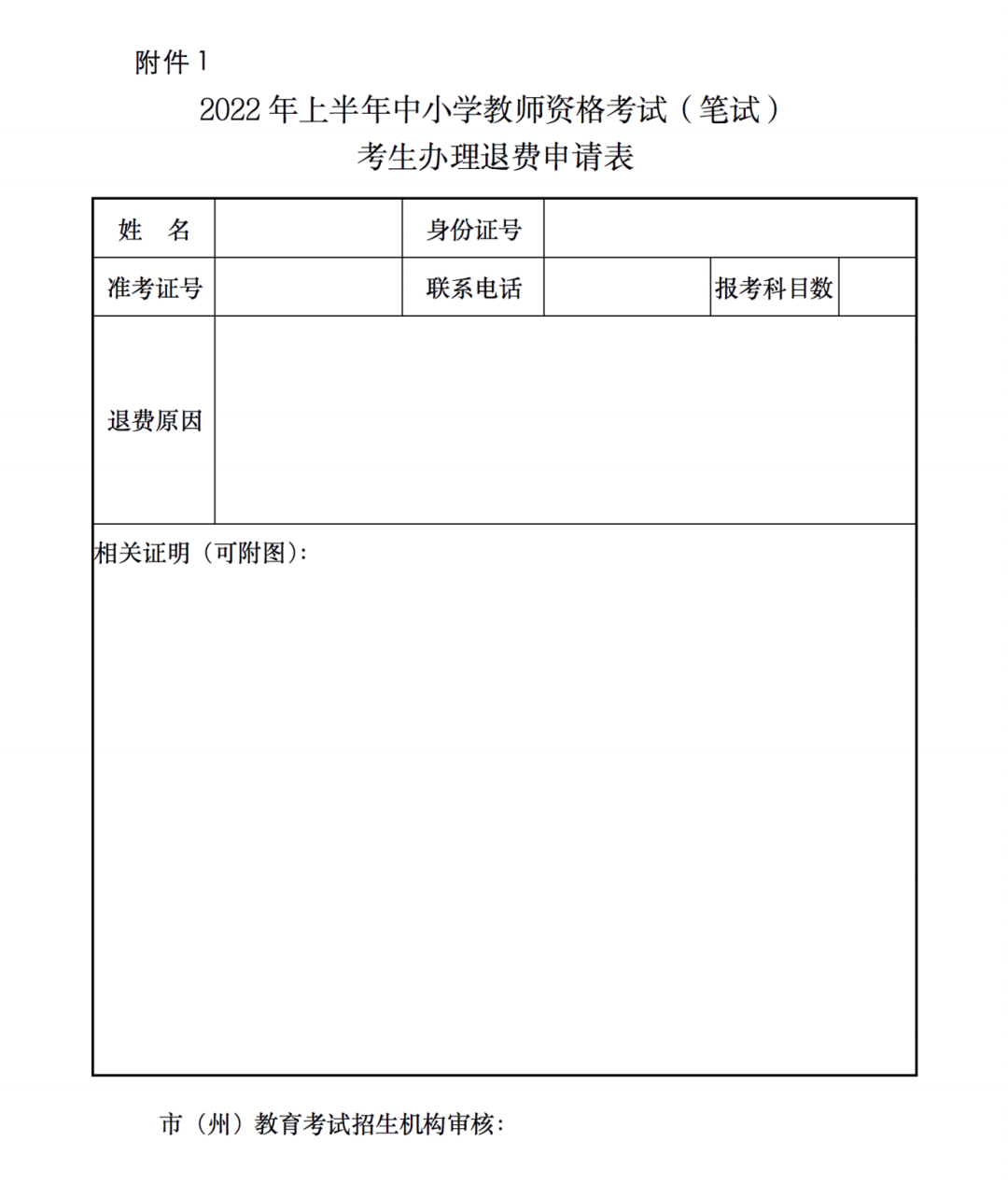1.2022年上半年中小學教師資格考試(筆試)考生辦理退費申請表(點擊“閱讀原文”下載)
