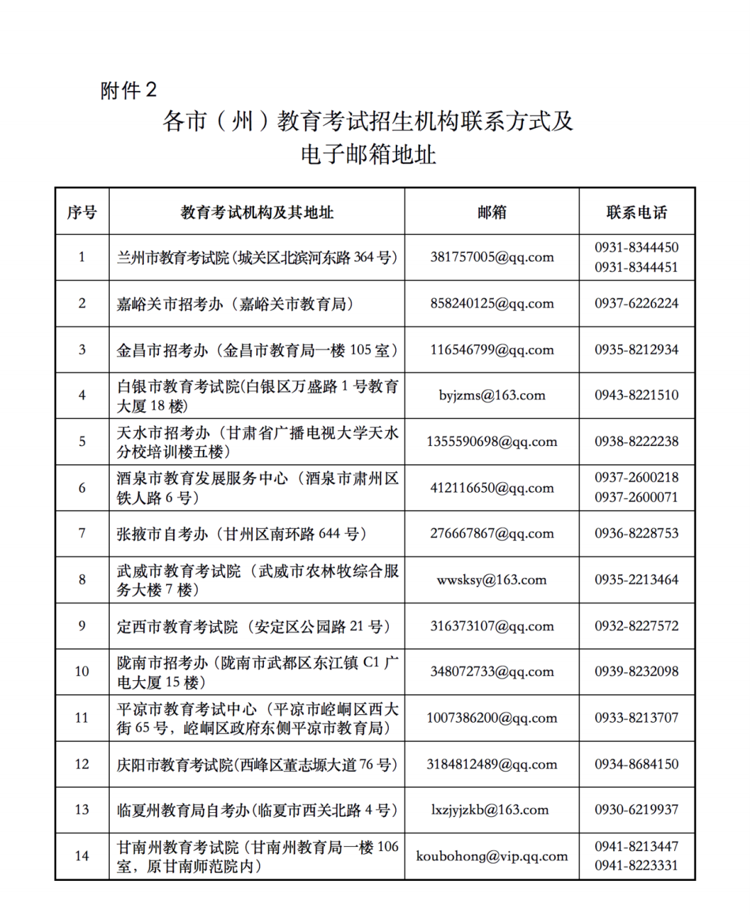 2.各市(州)教育考試招生機構聯系方式及電子郵箱地址