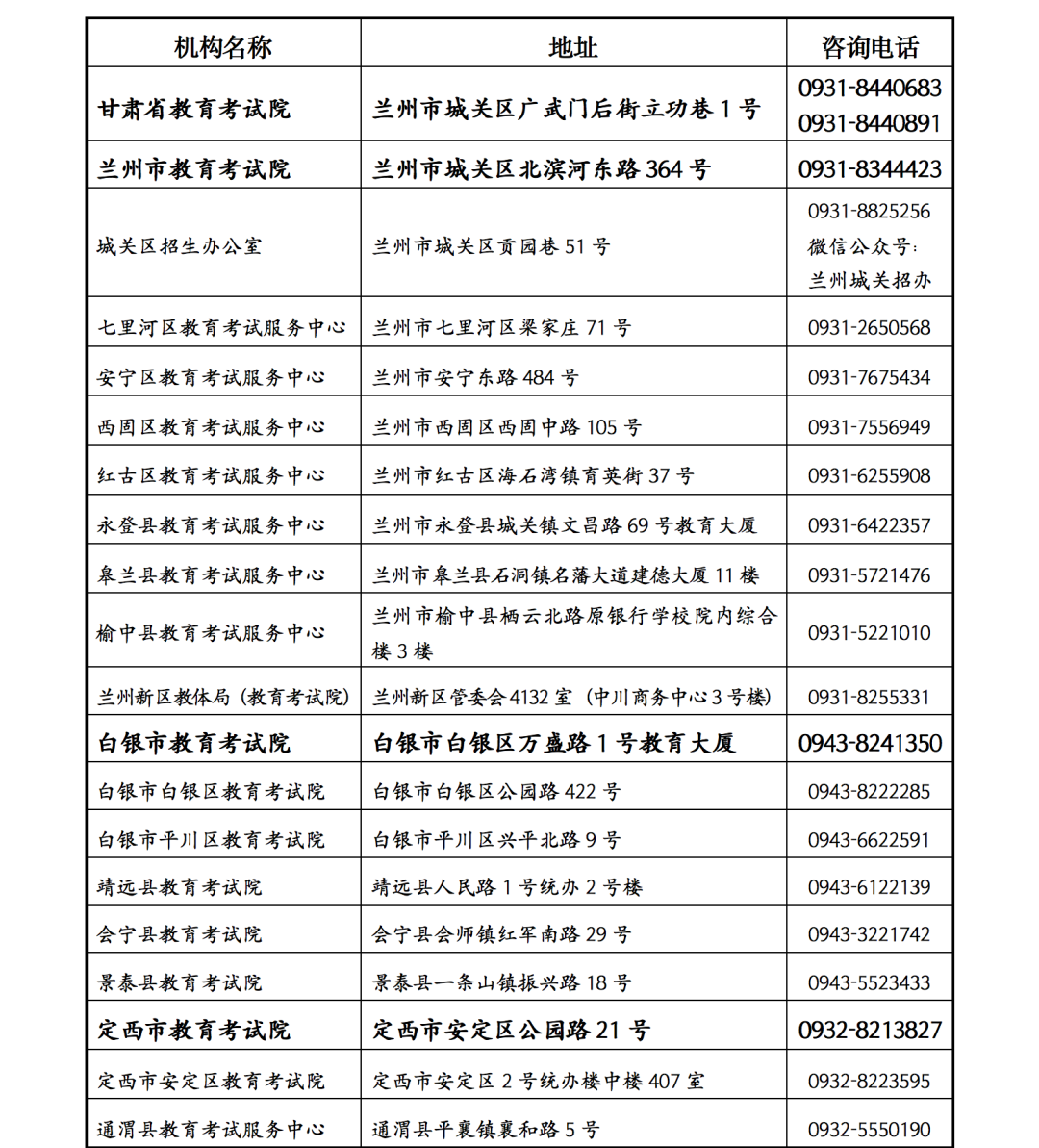 2022年甘肅省高考錄取期間各級(jí)教育考試招生機(jī)構(gòu)信訪接待點(diǎn)聯(lián)系方式