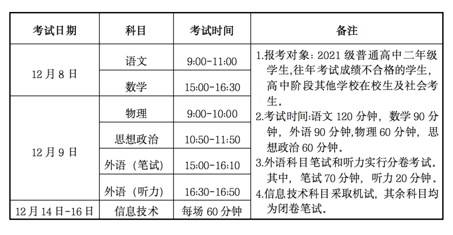 2022年冬季甘肅省普通高中學(xué)業(yè)水平合格性考試科目及時間安排