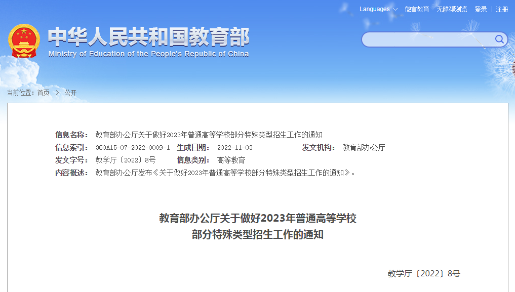 2022年底,教育部發布的《做好2023年普通高等學校部分特殊類型招生工作的通知》,對藝考生文化分數提高的要求更為明確,有兩段表述可以佐證。