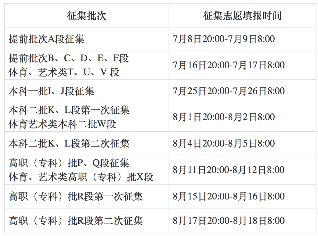 除本科提前批次(G段)、本科一批(H段)、高職(專科)批(S段)等三個批次中3個段不實行征集志愿外,其他批次其他段均實施征集志愿。
