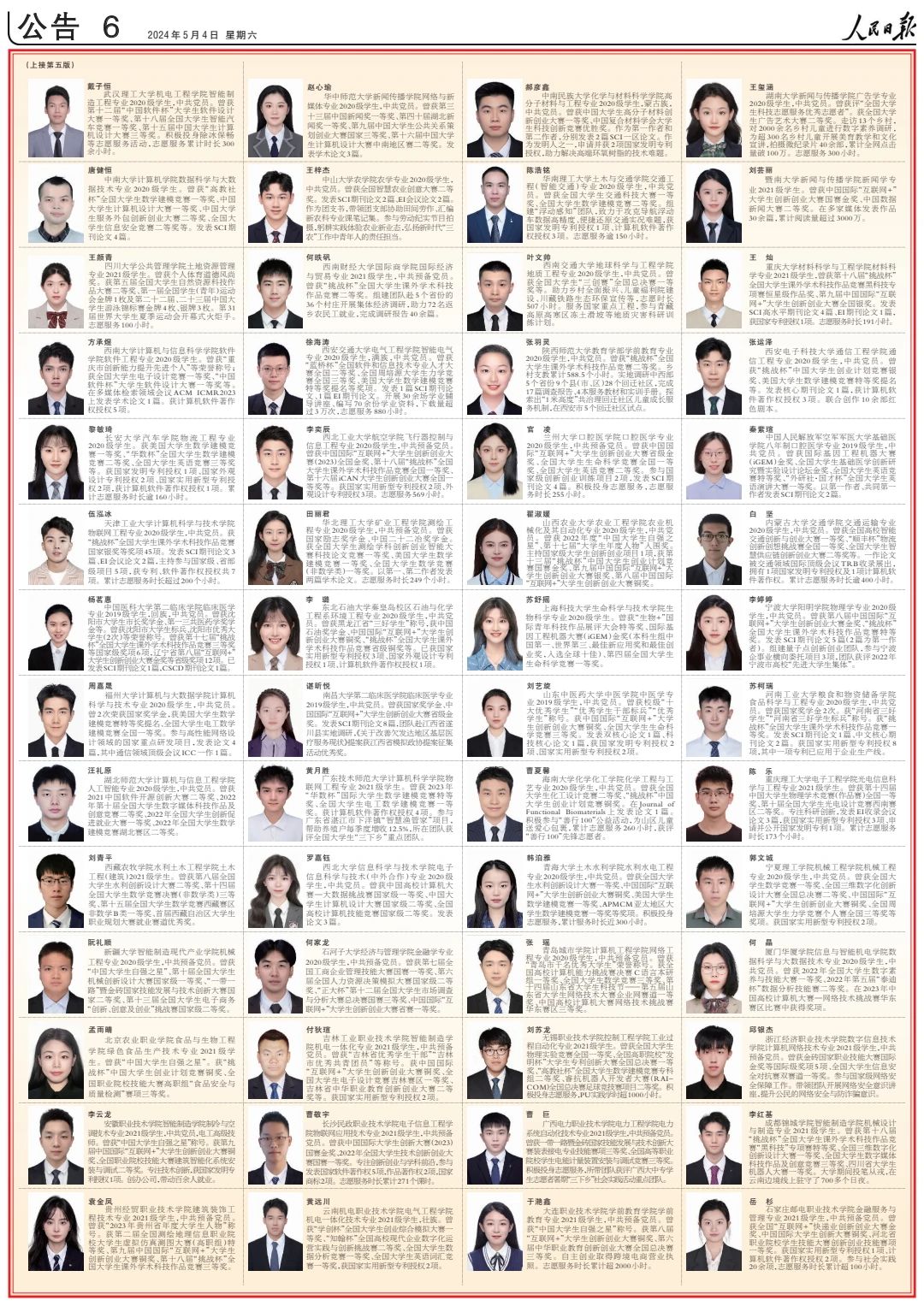 5月4日、5日出版的人民日?qǐng)?bào),用六個(gè)整版刊登了100名研究生國(guó)家獎(jiǎng)學(xué)金獲獎(jiǎng)學(xué)生優(yōu)秀代表、100名本專科生國(guó)家獎(jiǎng)學(xué)金獲獎(jiǎng)學(xué)生優(yōu)秀代表、100名中等職業(yè)教育國(guó)家獎(jiǎng)學(xué)金獲獎(jiǎng)學(xué)生優(yōu)秀代表名錄。