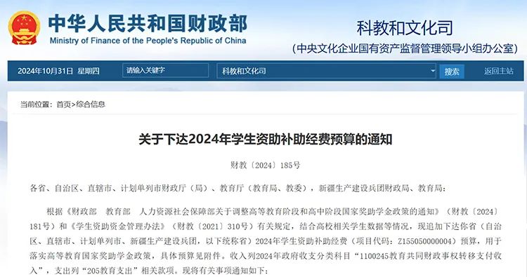 日前,財政部、教育部聯(lián)合發(fā)布《關(guān)于下達2024年學(xué)生資助補助經(jīng)費預(yù)算的通知》,