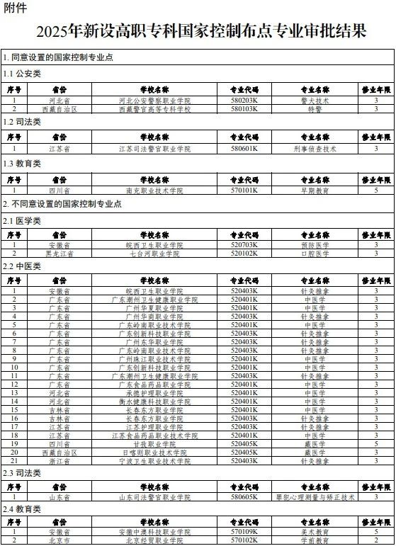 近日,教育部公布2025年高等職業(yè)教育專科專業(yè)設(shè)置備案和審批結(jié)果,
