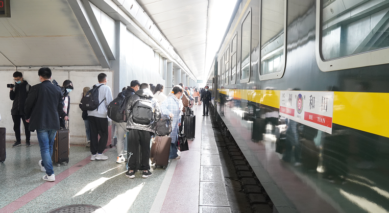 隨著各大院校陸續開學,蘭州局主動對接教育部門和各大高校,精準掌握學生返校日程,動態監控預售期內學生票預售情況。在了解到新疆和田師范專科學校有批量返校需求后,科學合理制定專列運輸保障方案,嚴格落實疫情防控措施,合理優化客運服務舉措,在進站口、安檢處、驗票閘機口增派人力,加強旅客組織引導,開辟綠色通道,減少排隊等待時間,提高進站上車效率,確保學生有序暢通出行。