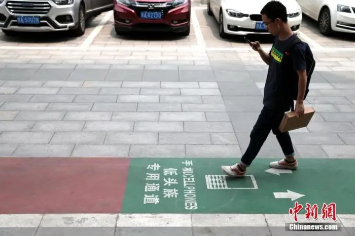 資料圖:西安街頭出現一條專為“低頭族”設計的通道。中新社記者 張遠 攝