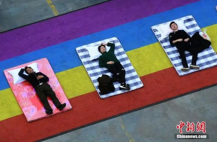 資料圖:市民用露天大睡公益行為藝術的方式迎接世界睡眠日的到來。陳超 攝