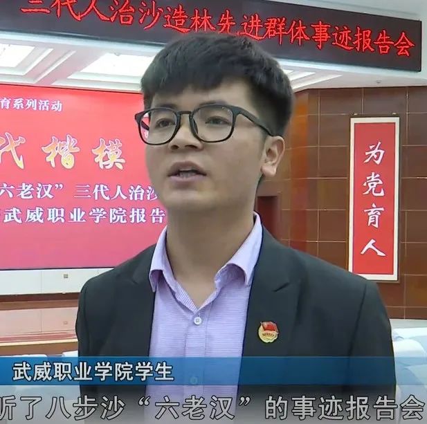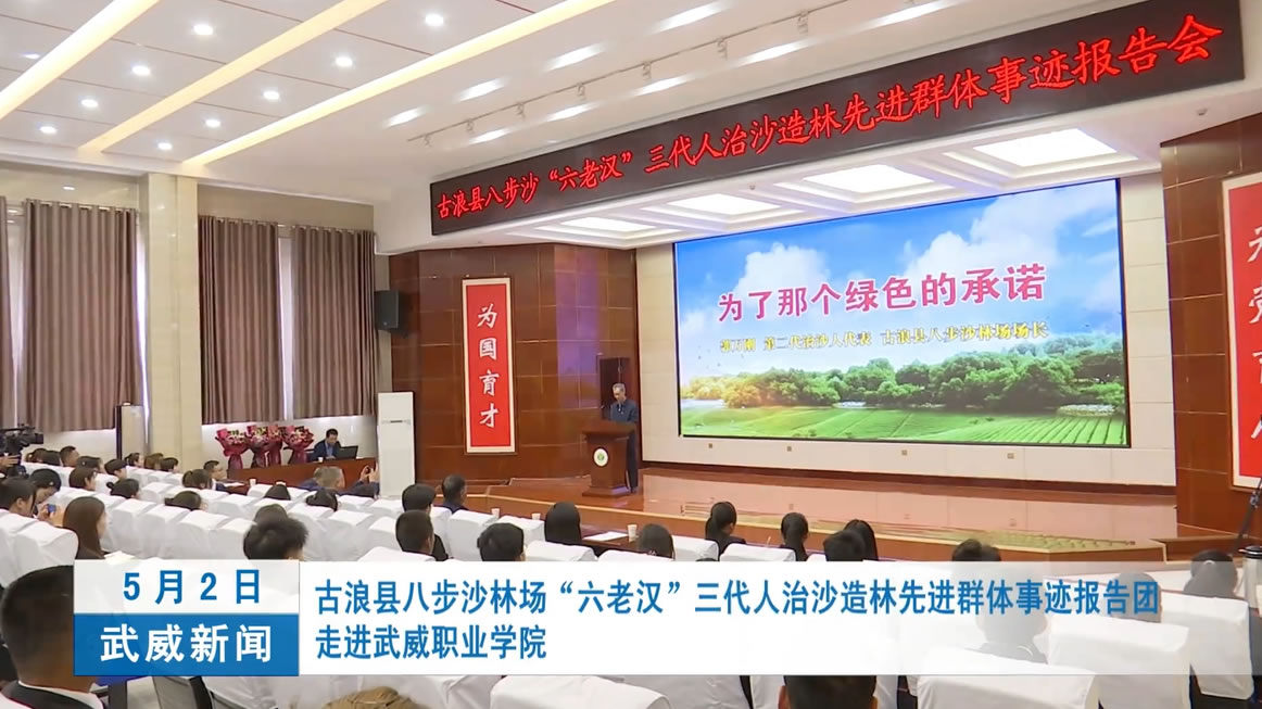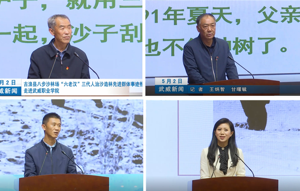 4月30日,八步沙林場“六老漢”三代人治沙造林先進群體事跡報告團受邀在武威職業(yè)學(xué)院作宣講報告,分享“六老漢”三代人艱苦奮斗、治沙造林的感人事跡。