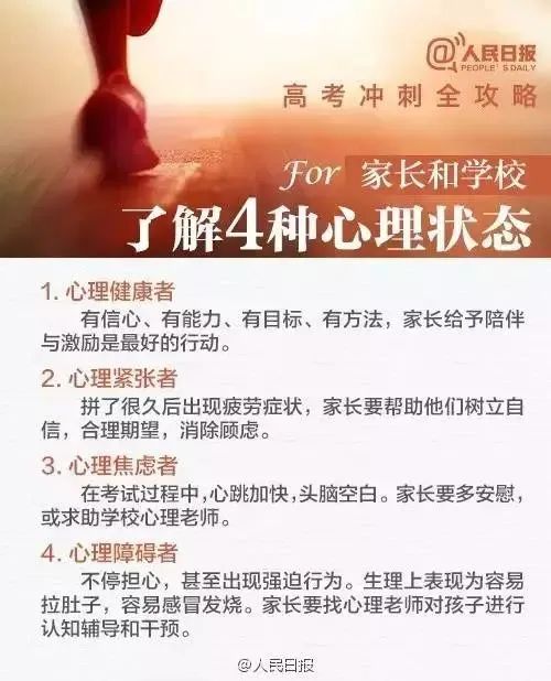 家長要注意控制自己的情緒,安慰學(xué)生應(yīng)對(duì)各種煩惱,如:記憶力下降;水平不升反降;考場緊張;壓力和焦慮等。