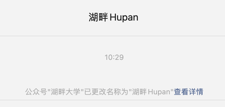 5月17日10點29分,原“湖畔大學”官方微信公眾號改名為“湖畔 Hupan”。而稍早些時候,原“湖畔大學”官方微博改名為“湖畔創研中心”。