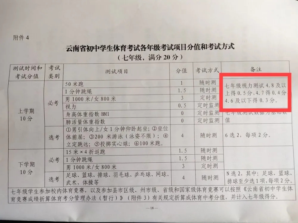 “視力分是2.5分,考生最后拉開的分差并不大。”云南省教育廳體衛(wèi)藝處處長徐忠祥解釋,“視力納入中考體育,主要是想起導向作用,引導青少年、家長、學校都能盡早重視孩子視力問題。”