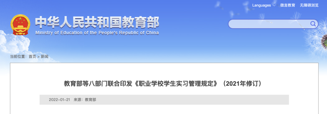 第五十條 本規(guī)定自印發(fā)之日起施行,此前發(fā)布的教育部及有關部門文件中,有關職業(yè)學校學生實習相關內(nèi)容與此規(guī)定不一致的,以此規(guī)定為準。《職業(yè)學校學生實習管理規(guī)定》(教職成〔2016〕3號)同時廢止。