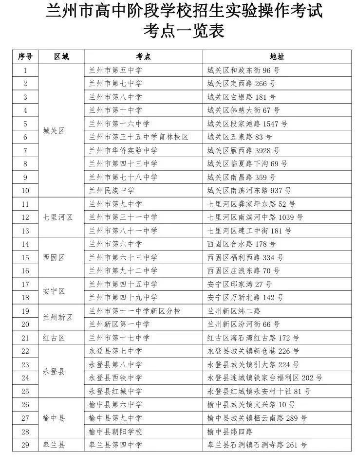常態化防疫期間,考生在考點兩次以上體溫檢測異常(高于37.3℃)的,應暫緩考試,緩考將于6月24日進行。已安排緩考,但因健康原因仍不能在規定時間參加緩考的,成績按每科實驗操作考試滿分的60%計。緩考考生準考證需重新編排,城市四區由蘭州市教育條件裝備辦公室簽發,考生于6月24日持原準考證到達考點后換取新證參加考試。緩考考點設在蘭州八十一中,物理緩考:6月24日8:30檢錄,9:00開考。化學緩考:6月24日9:30檢錄,10:00開考。生物學緩考:6月24日10:30檢錄,11:00開考。
