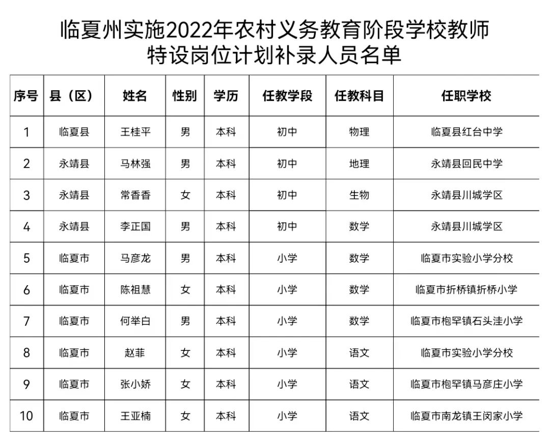 按照《甘肅省教育廳?甘肅省人力資源和社會保障廳?甘肅省財政廳關(guān)于印發(fā)甘肅省2022年農(nóng)村義務(wù)教育階段學(xué)校教師特設(shè)崗位計劃實(shí)施方案的通知》(甘教師〔2022〕2號)要求,全省2022年農(nóng)村義務(wù)教育階段學(xué)校教師特設(shè)崗位計劃補(bǔ)錄工作已經(jīng)完成。現(xiàn)對天水等地擬補(bǔ)錄人員(37名)進(jìn)行公示,時間為2022年10月18日至10月24日(五個工作日)。公示期間,如有異議,請聯(lián)系省教育廳教師工作處實(shí)名反映。