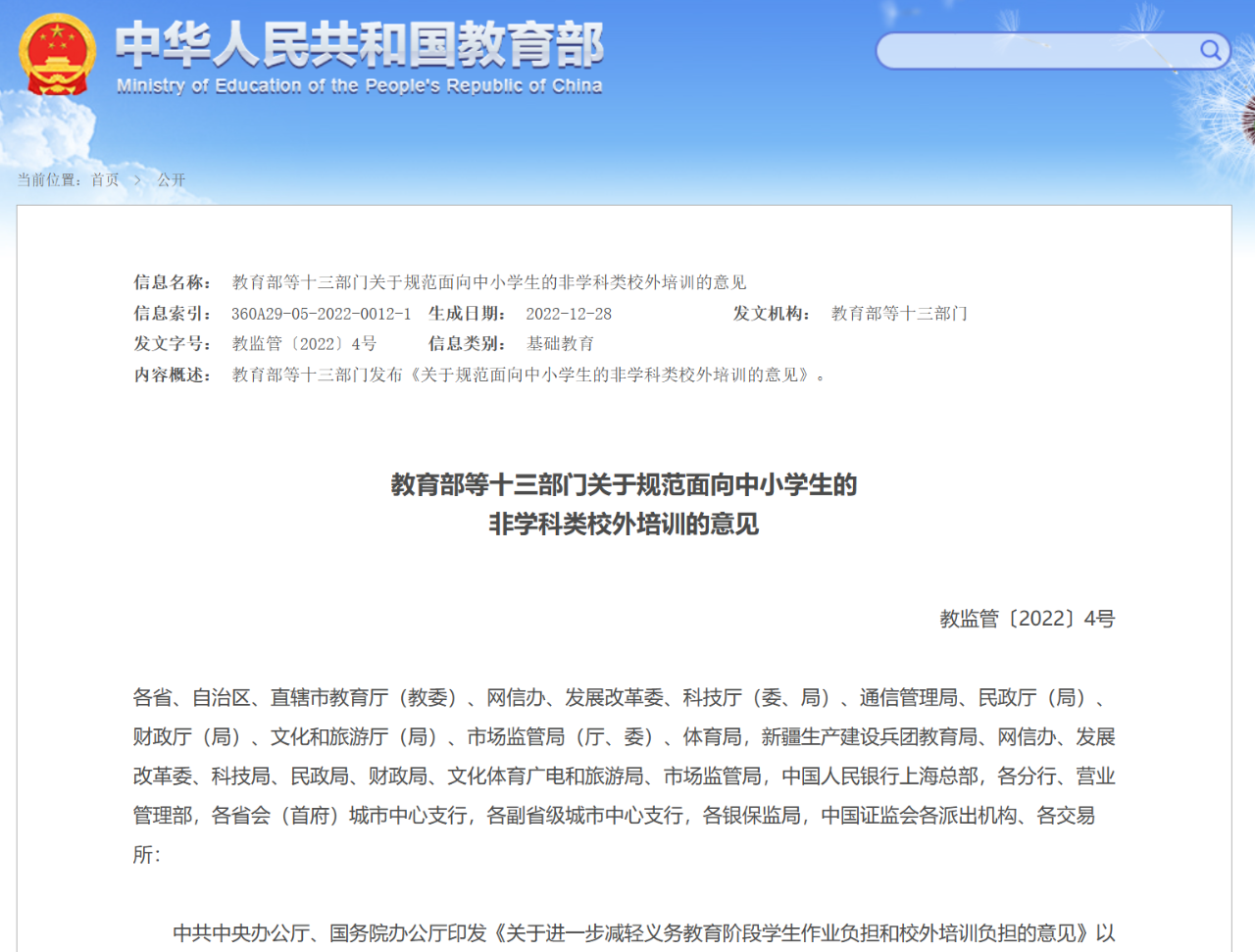 2021年7月,中共中央辦公廳、國務(wù)院辦公廳印發(fā)《關(guān)于進(jìn)一步減輕義務(wù)教育階段學(xué)生作業(yè)負(fù)擔(dān)和校外培訓(xùn)負(fù)擔(dān)的意見》,部署實(shí)施“雙減”工作。一年多來,在全國各地及社會各方共同努力下,學(xué)科類培訓(xùn)治理取得階段性進(jìn)展。在此基礎(chǔ)上,為回應(yīng)社會關(guān)切,加快解決非學(xué)科類培訓(xùn)出現(xiàn)的問題,全面規(guī)范非學(xué)科類培訓(xùn)行為,維護(hù)廣大學(xué)生及家長合法權(quán)益,近日,教育部等十三部門印發(fā)《關(guān)于規(guī)范面向中小學(xué)生的非學(xué)科類校外培訓(xùn)的意見》(以下簡稱《意見》),對非學(xué)科類校外培訓(xùn)治理作出系統(tǒng)部署。具體內(nèi)容跟甘小教一起來看——
